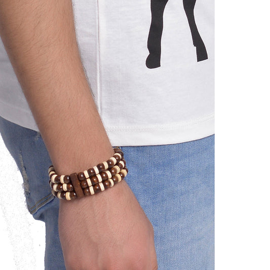 MLS - Unisex Carved Olive Wood Bead 3 Layer Stretch Bracelet (MLSOBSB224)