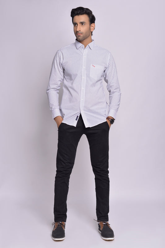 MLS - Men’s Wrinkle Free Work Shirt White Black Stripe (MLSWSWBS24)