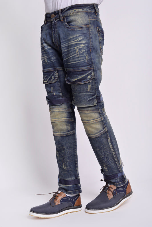 MLS - مردوں کے ڈینم ڈسٹریسڈ گھٹنے ونٹیج بائیکر جینز (MLSDKVJ001)