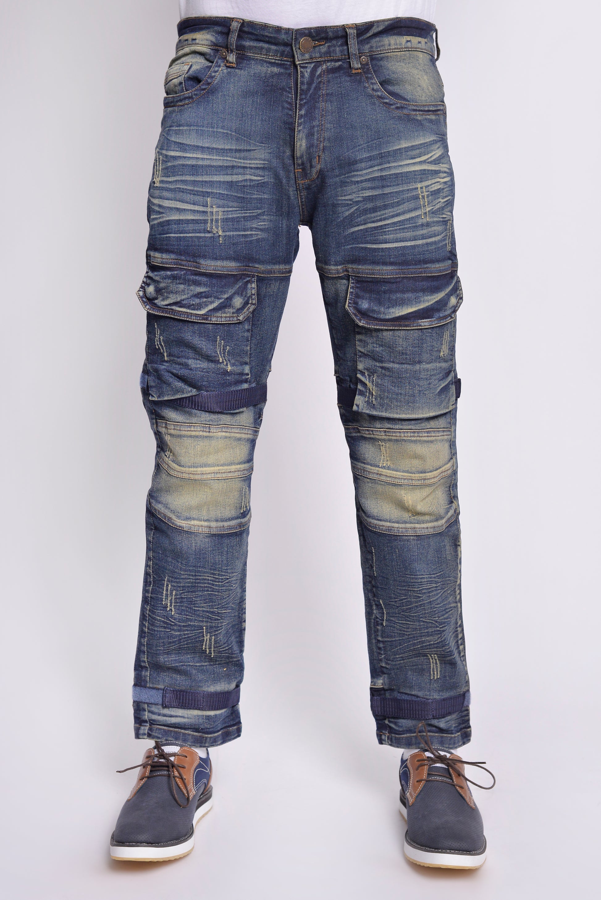 MLS - مردوں کے ڈینم ڈسٹریسڈ گھٹنے ونٹیج بائیکر جینز (MLSDKVJ001)